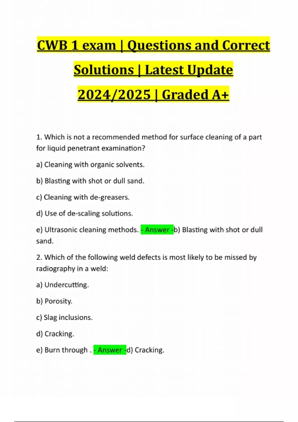 Package Deal for CWB Welding All Modules, Levels Exams | Questions and Correct Answers | Latest Update 2024/2025 | Graded A+