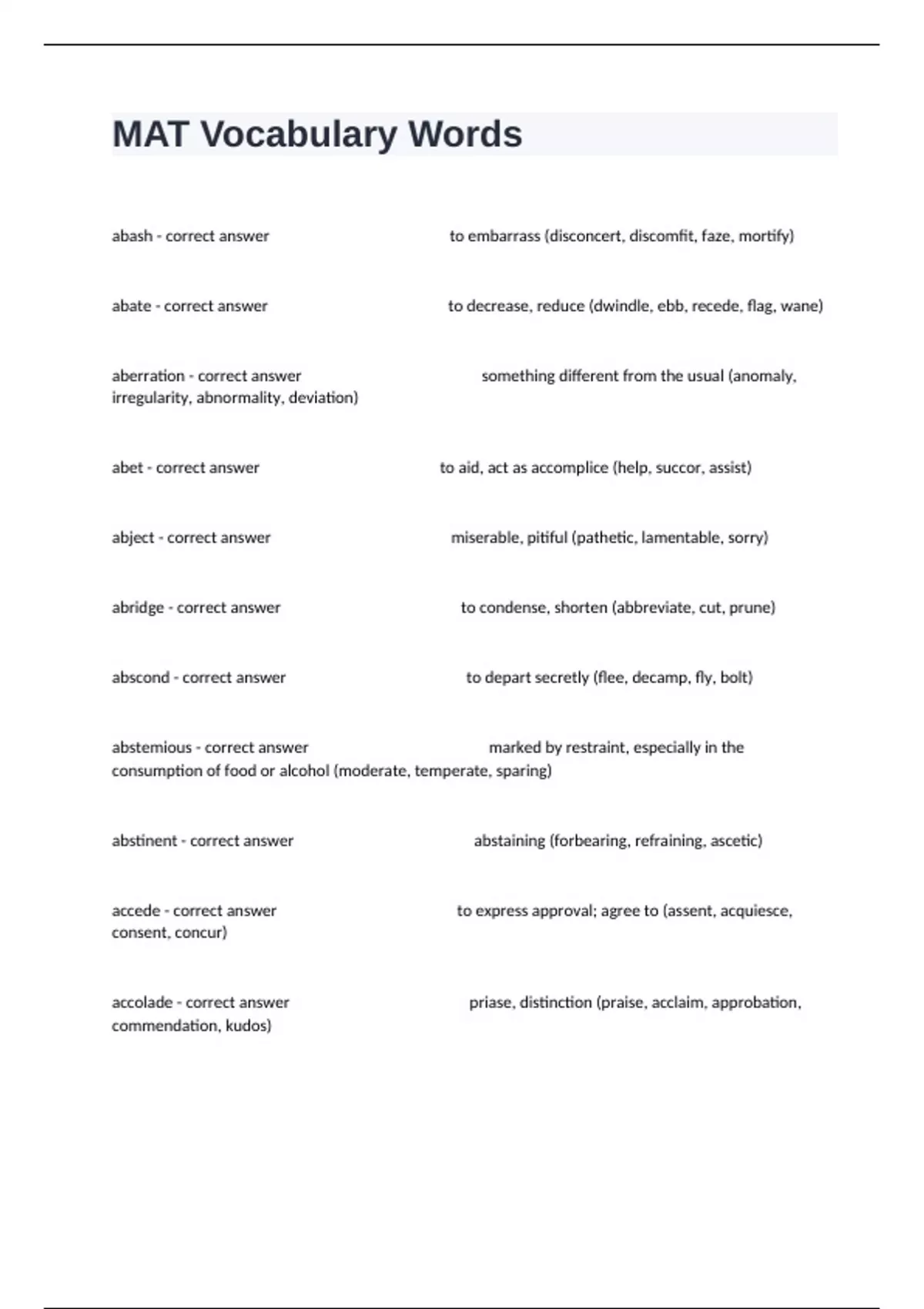 package deal of MAT Exam Bundle With 100% Verified Answers.