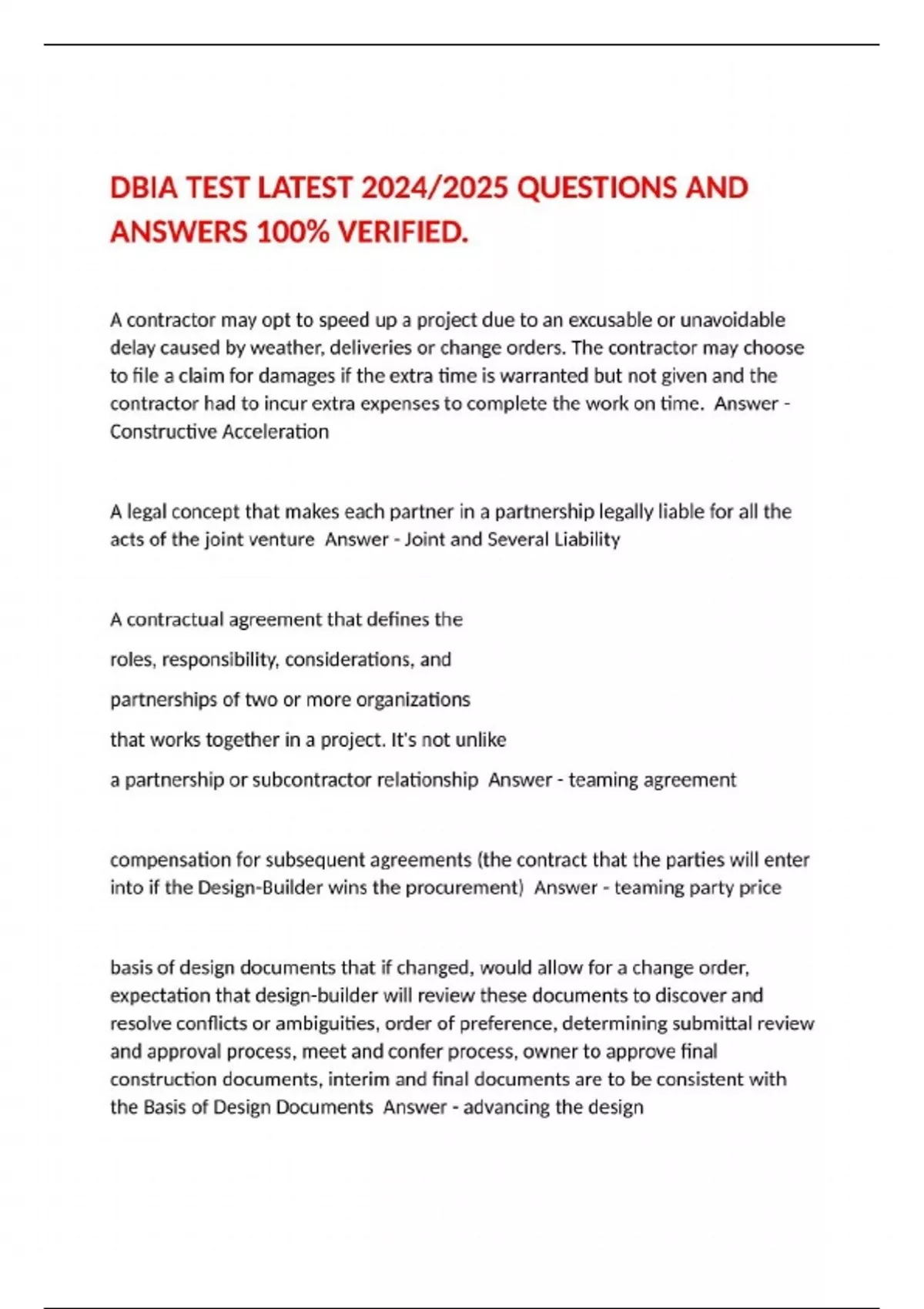 DBIA TEST LATEST 2024/2025 QUESTIONS AND ANSWERS 100% VERIFIED. DBIA EXAM 1 NEWEST VERSION 2024/2025;ACTUAL QUESTIONS AND ANSWERS 100% VERIFIED. DBIA EXAM 2 LATEST 2024/2025 GUIDE;ACTUAL QUESTIONS AND ANSWERS GRADED 100% VERIFIED DBIA EXAM 3 NEWEST 2024/2025 VERSION;QUESTIONS AND ANSWERS/100% CORRECT/GRADED A+