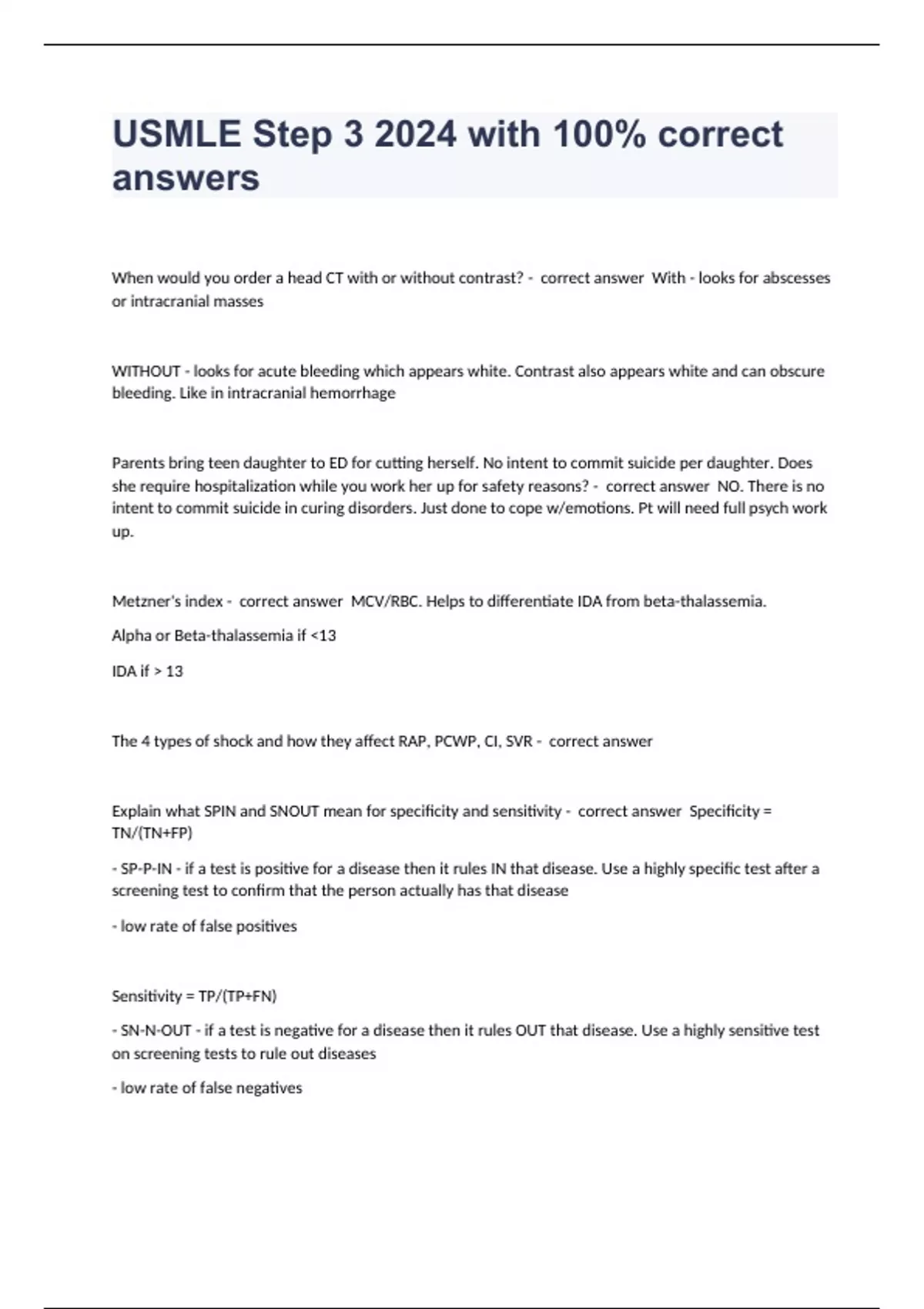 USMLE UWORLD STEP 1 EXAM 2024/2025 WITH GUARANTEED ACCURATE ANSWERS |VERIFIED USMLE STEP 1 RAPID EXAM 2024/2025 WITH GUARANTEED ACCURATE ANSWERS |VERIFIED USMLE STEP 2 PRACTICE TEST EXAM WITH GUARANTEED ACCURATE ANSWERS |VERIFIED USMLE Step 3 – Psychiatry exam 2024 with 100% correct answers USMLE step 3 exam 2024 with 100% correct answers USMLE Ste