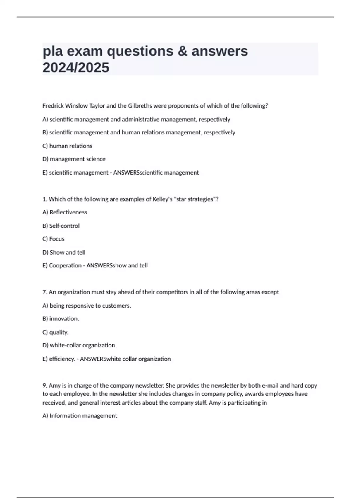 pla exam questions & answers 2024/2025