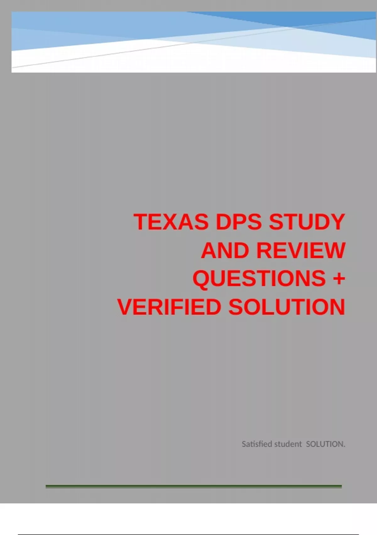 Texas DPS Study and Review Questions + verified solution