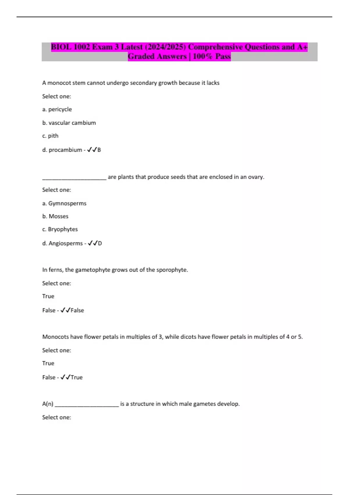 LSU BIOL 1002 Exams Latest (2024/2025) Comprehensive Questions and A+ Graded Answers | 100% Pass