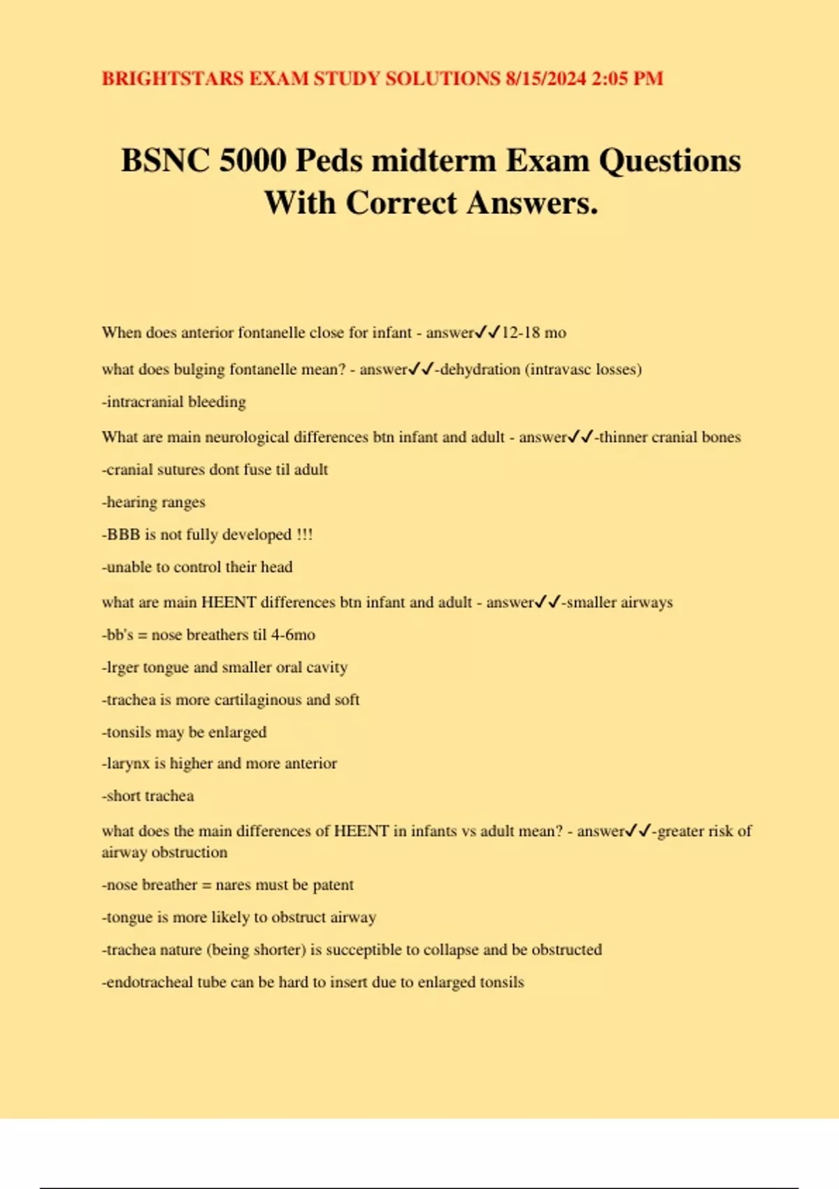 BSNC 5000 Peds midterm Exam Questions With Correct Answers.