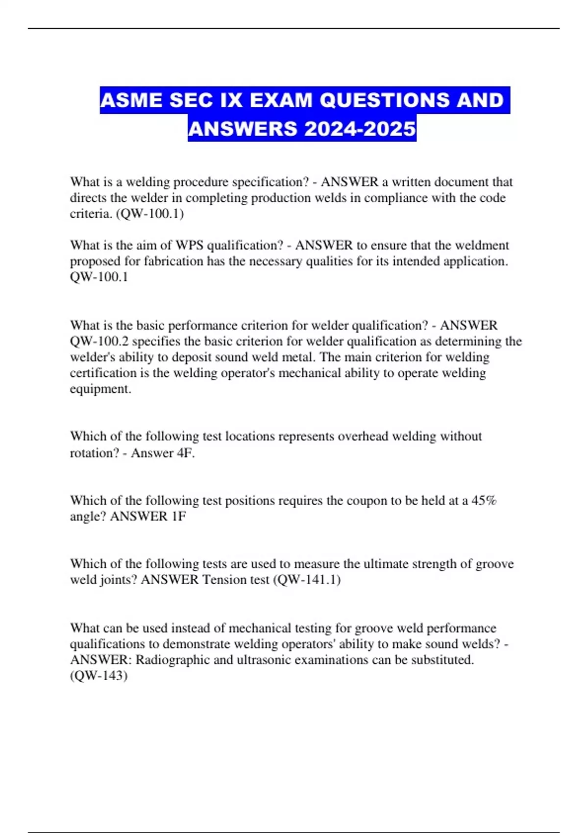 ASME SEC IX EXAM QUESTIONS AND ANSWERS