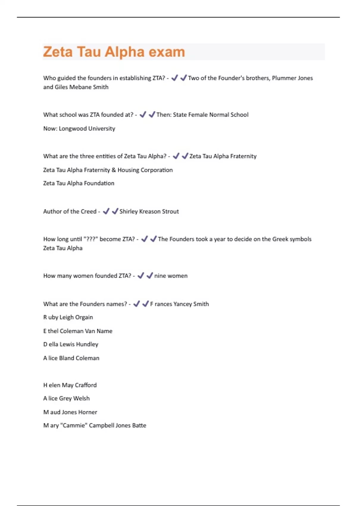 Zeta Tau Alpha Founders Questions And Answers Rated A+ New Update Assured Satisfaction