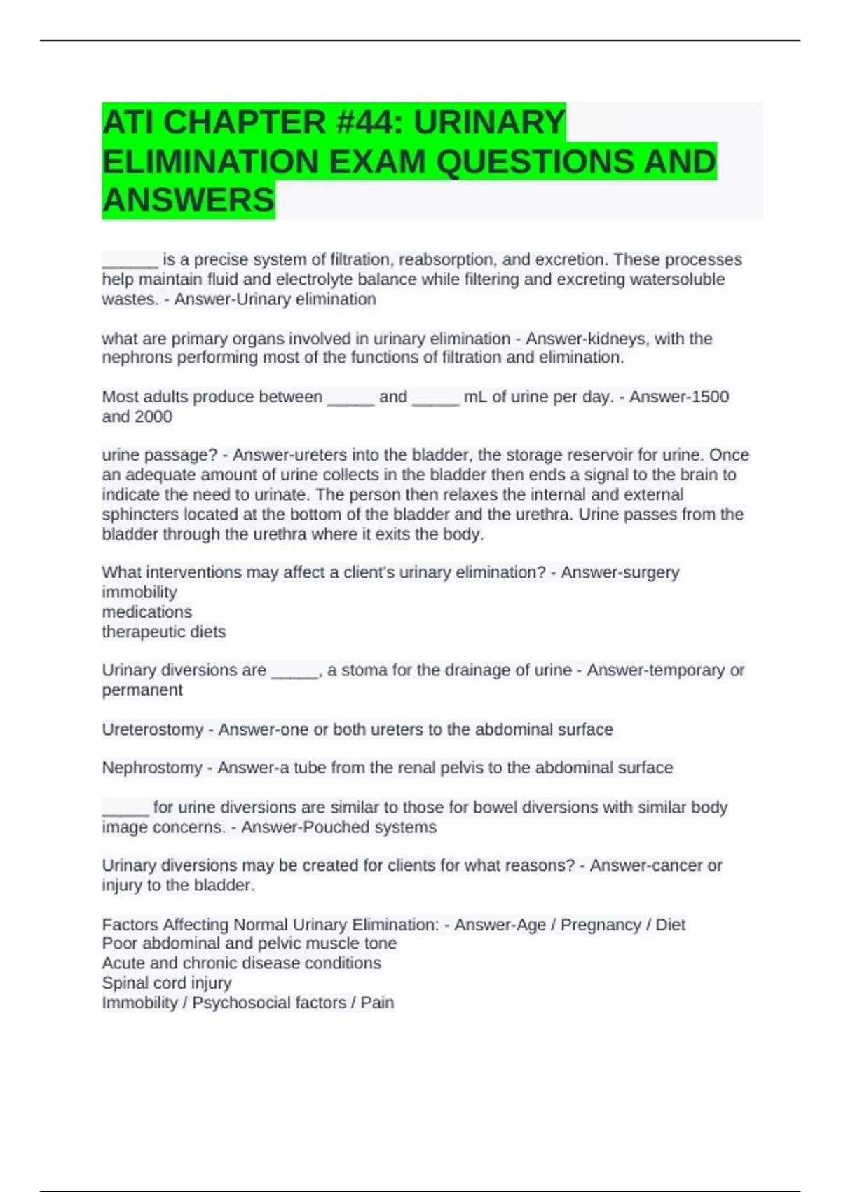 ATI ELIMINATION QUIZ QUESTIONS AND ANSWERS 2 Exam (elaborations) ATI LEARNING SYSTEM, MEDICAL SURGICAL: RENAL AND URINARY EXAM QUESTIONS AND ANSWERS 3 Exam (elaborations) ATI MED SURG RENAL & URINARY EXAM QUESTIONS WITH COMPLETE SOLUTIONS 4 Exam (elaborations) ATI RECTUM AND GENITOURINARY POST TEST EXAM QUESTIONS AND ANSWERS 5 Exam (elaboration