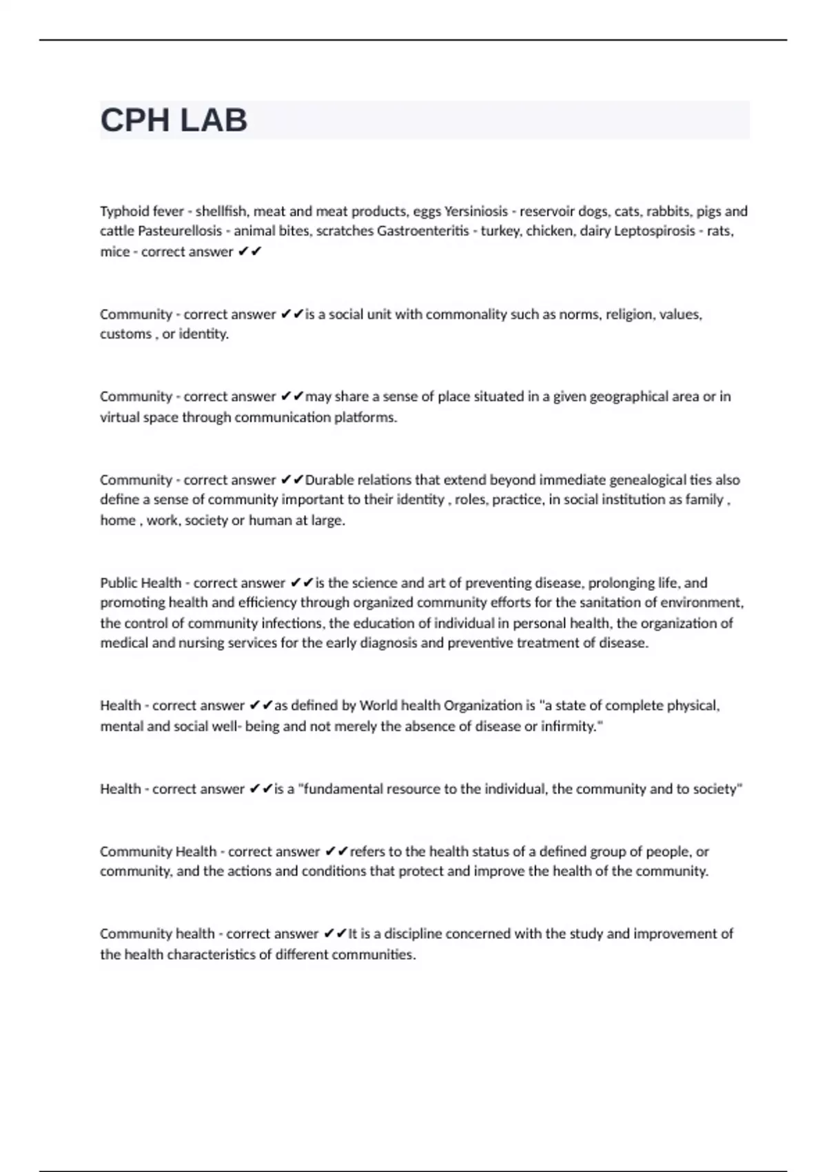 CPH LAB EXAM bundled!