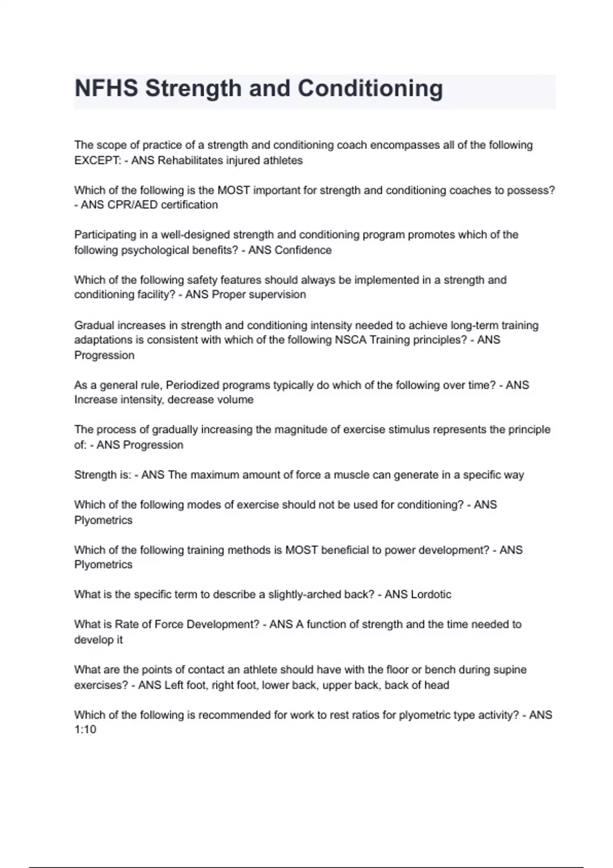 NFHS Strength and Conditioning Exam 2024/2025 Questions With Completed & Verified Solutions.