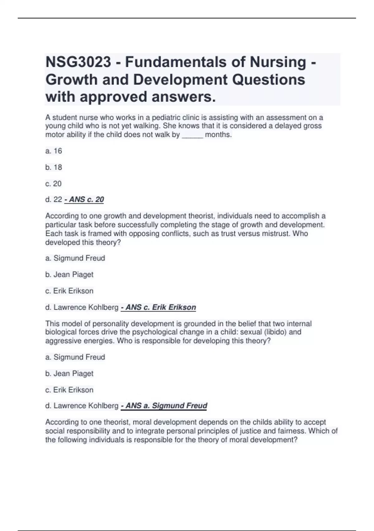 NSG3023 - Fundamentals of Nursing - Growth and Development Questions with approved answers.
