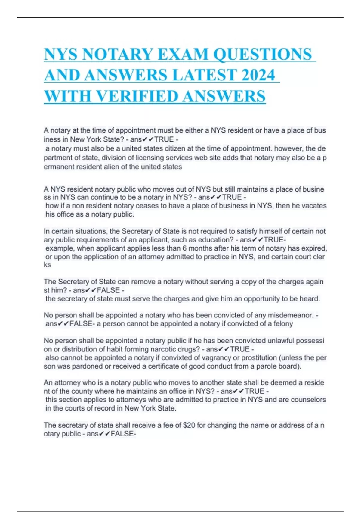 NEW YORK STATE NOTARY EXAM COMPREHENSIVE STUDY GUIDE QUESTIONS WITH COMPLETE SOLUTIONS
