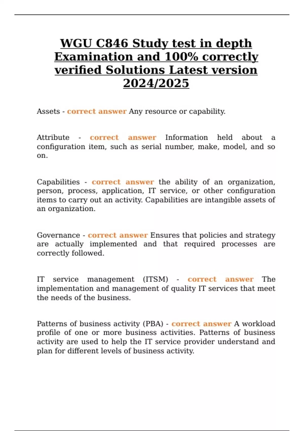 WGU C 846 ITIL Study Guide Exam Questions and Answers 20204/2025 (Package Deal)