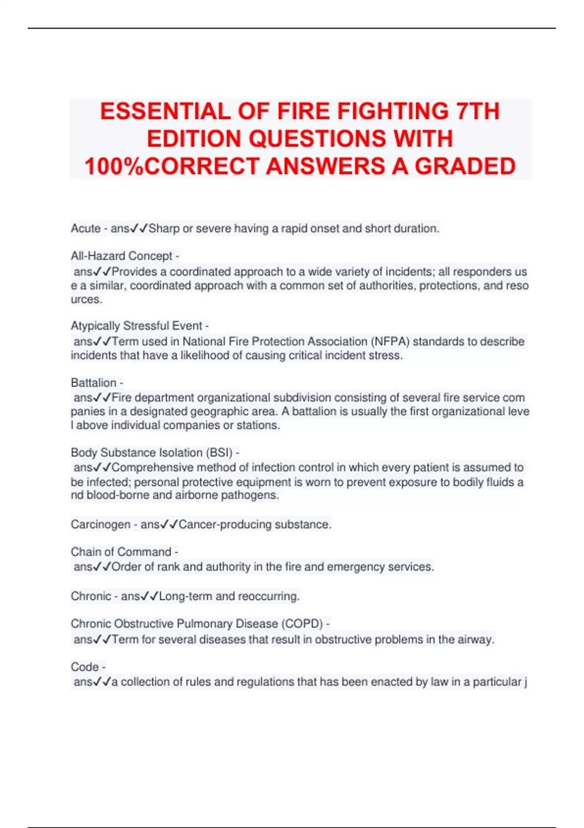 ESSENTIALS OF FIRE FIGHTING 7TH EDITION - CHAPTER 3: BUILDING CONSTRUCTION QUESTIONS WITH CORRECT ANSWERS