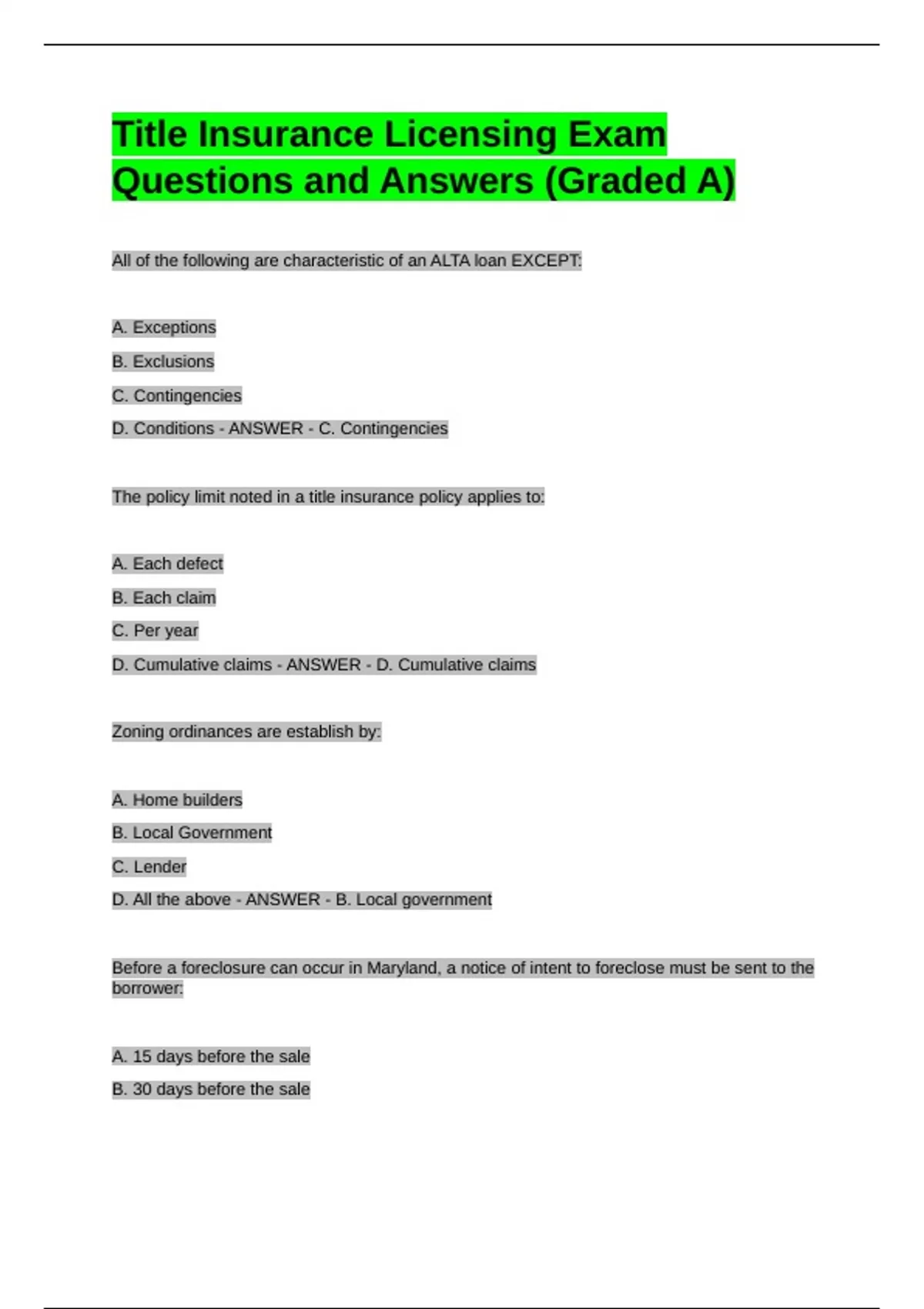 Alabama Title Insurance Exam BUNDLE (PACKAGE DEAL) Questions and Answers 100% VerifiedAlabama Title Insurance Exam BUNDLE (PACKAGE DEAL) Questions and Answers 100% VerifiedAlabama Title Insurance Exam BUNDLE (PACKAGE DEAL) Questions and Answers 100% VerifiedAlabama Title Insurance Exam BUNDLE (PACKAGE DEAL) Questions and Answers 100% VerifiedAlabam