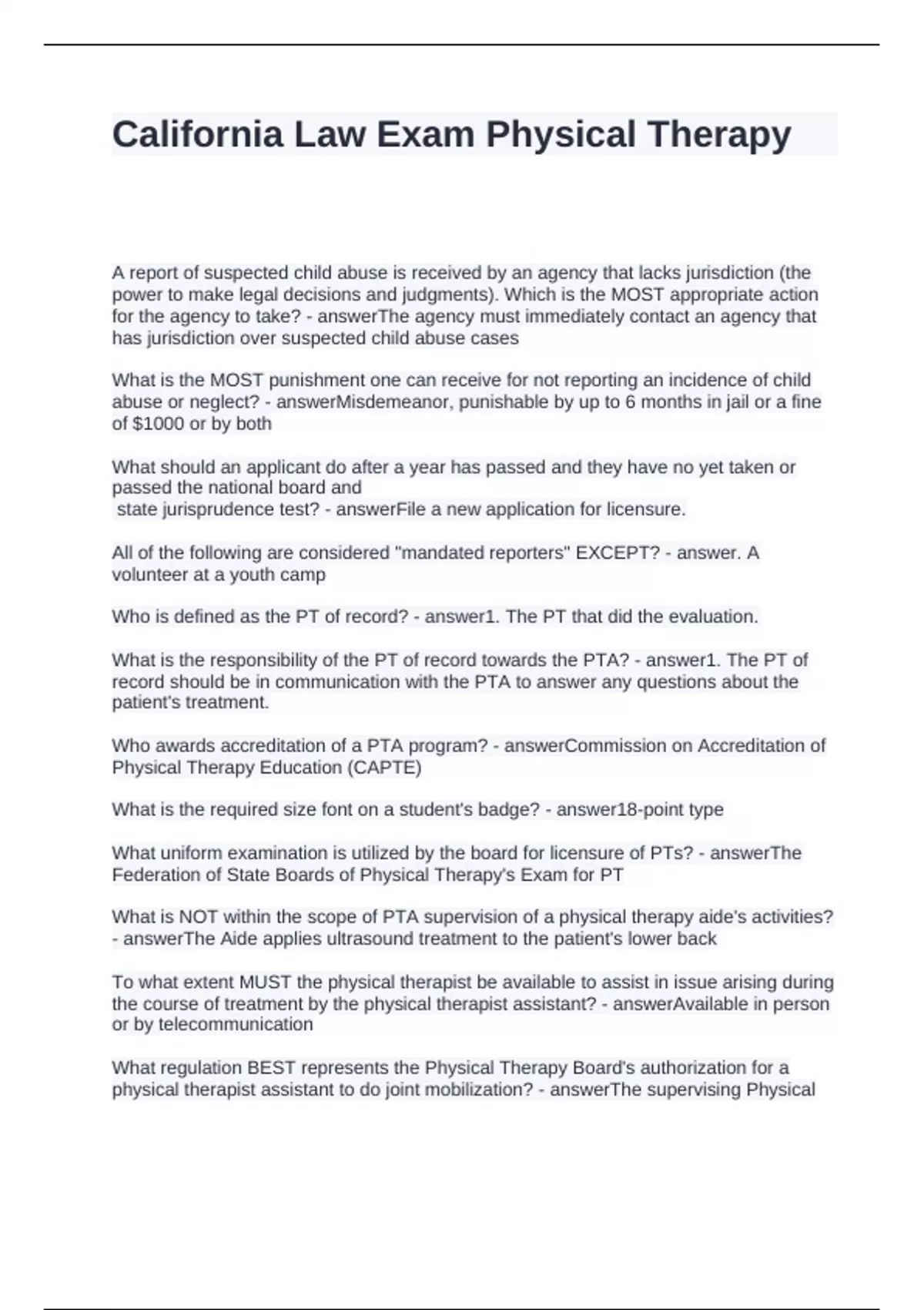 CA Law Exam Physical Therapy Questions with Accurate Answers