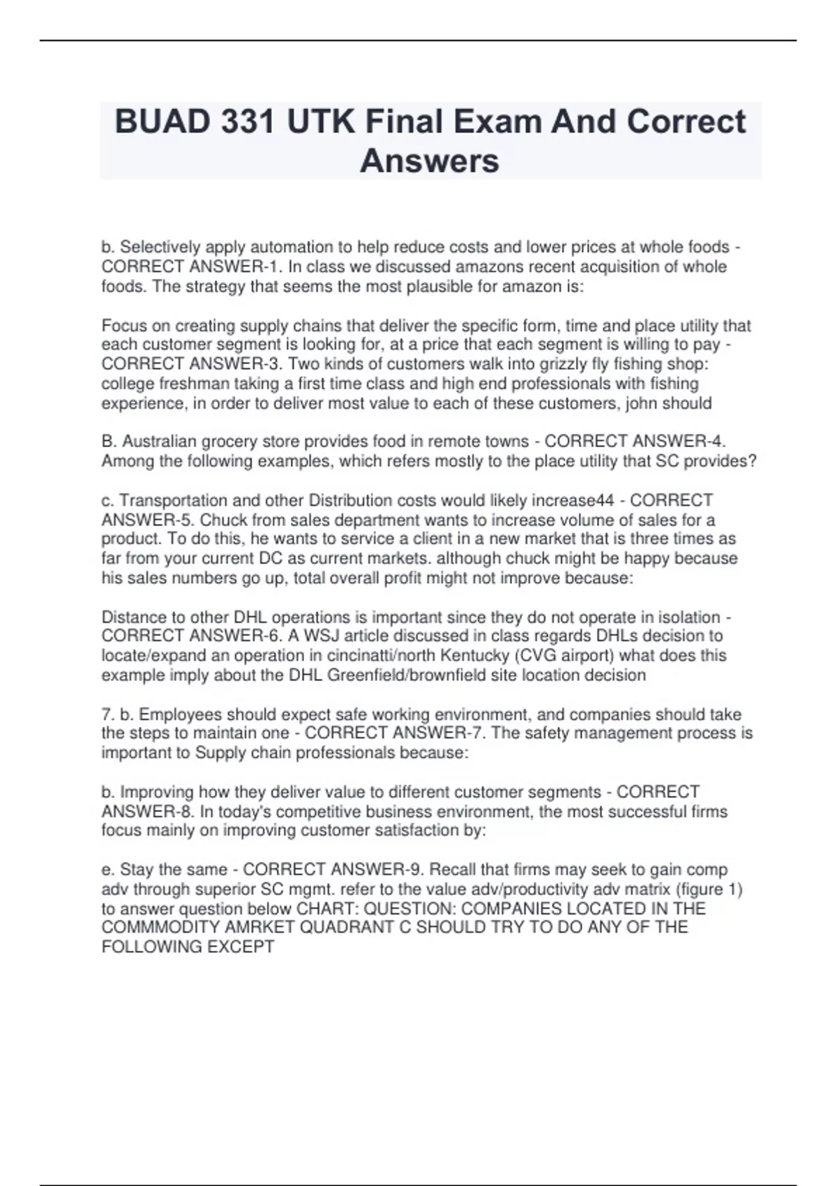 Ch 17- Peripheral Vascular System Question And Answers BUAD 331 UTK Final Exam And Correct Answers Buad-331 final exam Question And Answers BUS-485: Chapters 1-6 Questions And Answers Collecting Information with Forms Quiz Questions With Answers