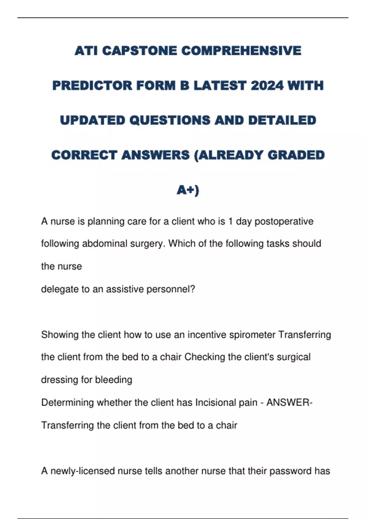 ATI CAPSTONE EXAMS COMPILATION LATEST WITH UPDATED QUESTIONS AND DETAILED CORRECT ANSWERS WITH RATIONALES (ALREADY GRADED A )
