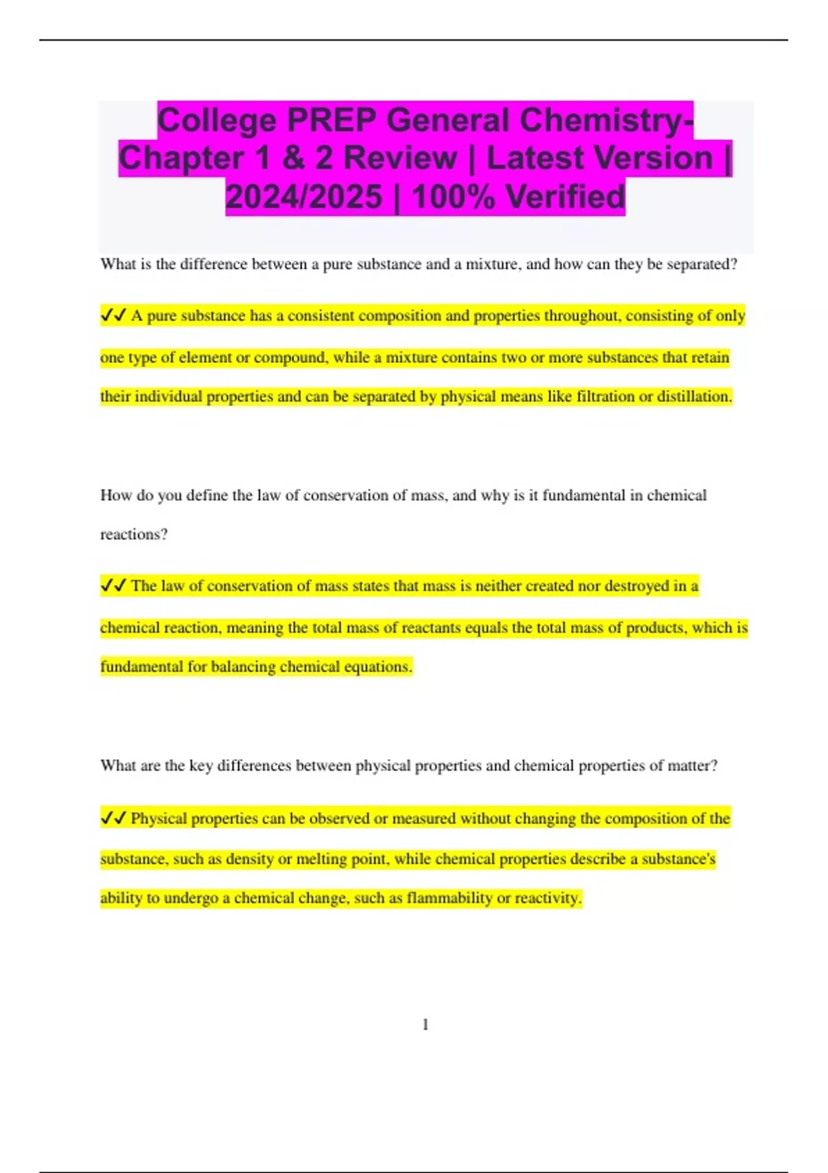 General Chemistry Bundled Exams Questions and Answers Multiple Versions Latest Updates (2024/2025) (Complete, Accurate, and Verified)