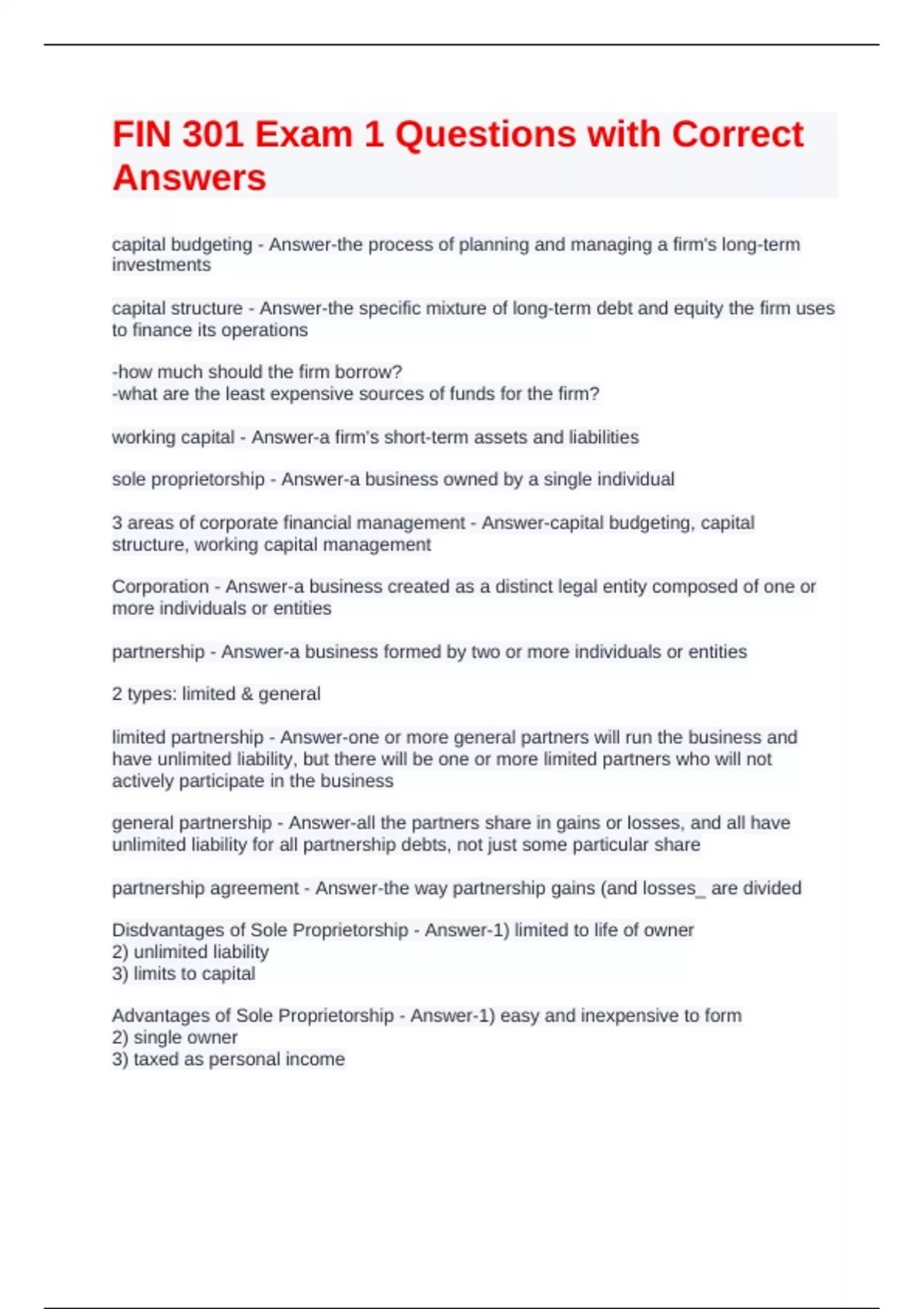 Exam (elaborations) PSU Finance 301 Exam 1 Questions with Correct Answers Exam (elaborations) Finance 301 Final Exam Questions with Correct Answers Exam (elaborations) Final Exam Study Fin 301 Ch. 14-15b Questions with Correct Answers Exam (elaborations) Final Exam Fin 301 Concept Questions with Latest Update Exam (elaborations)