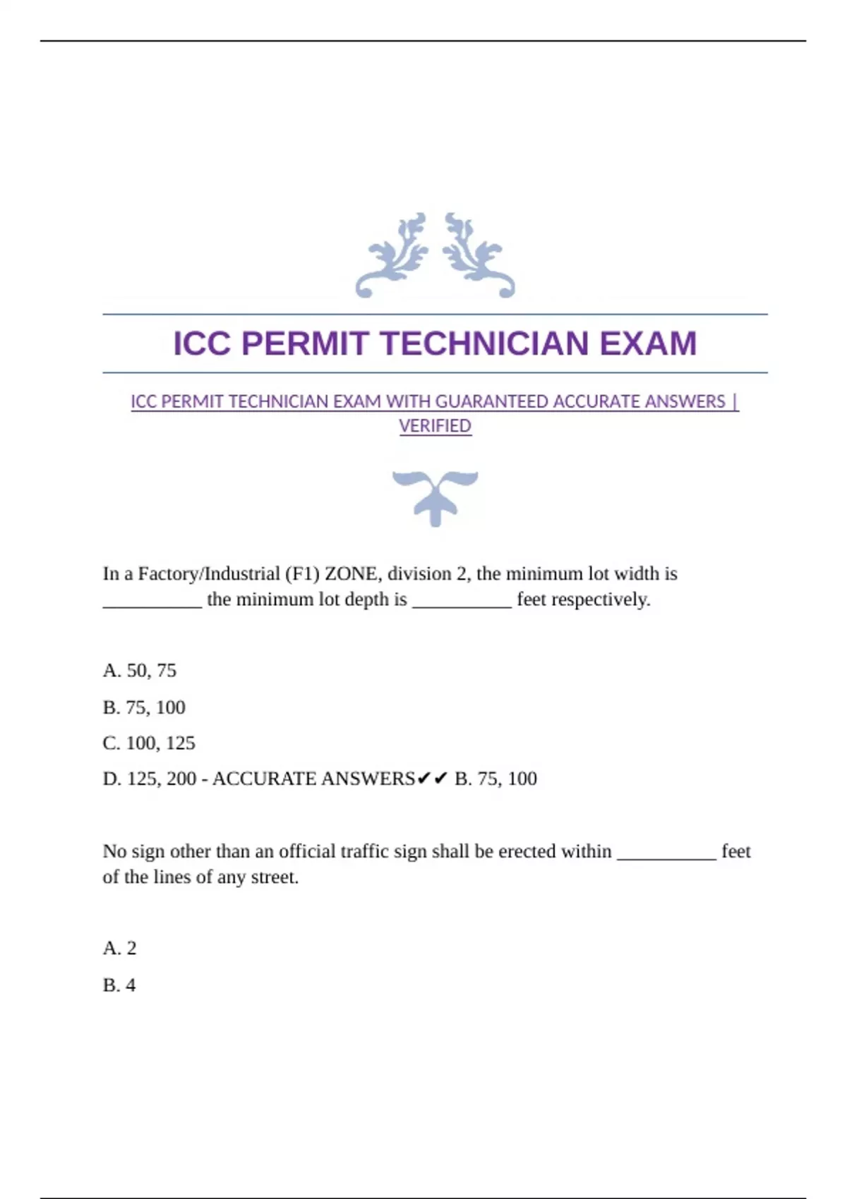 ICC PERMIT TECHNICIAN EXAM WITH GUARANTEED ACCURATE ANSWERS |VERIFIED ICC PERMIT TECHNICIAN EXAM WITH GUARANTEED ACCURATE ANSWERS |VERIFIED ICC PERMIT TECHNICIAN EXAM WITH GUARANTEED ACCURATE ANSWERS |VERIFIED ICC BUILDING OFFICIAL S TEST QUESTIONS WITH GUARANTEED ACCURATE ANSWERS |VERIFIED ICC PERMIT TECH PART1 EXAM WITH GUARANTEED ACCURATE ANSWE