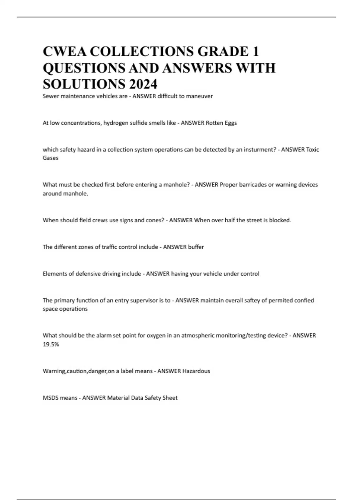 CWEA PACKAGE DEAL QUESTIONS AND ANSWERS WITH VERIFIED SOLUTIONS UPDATED 2024