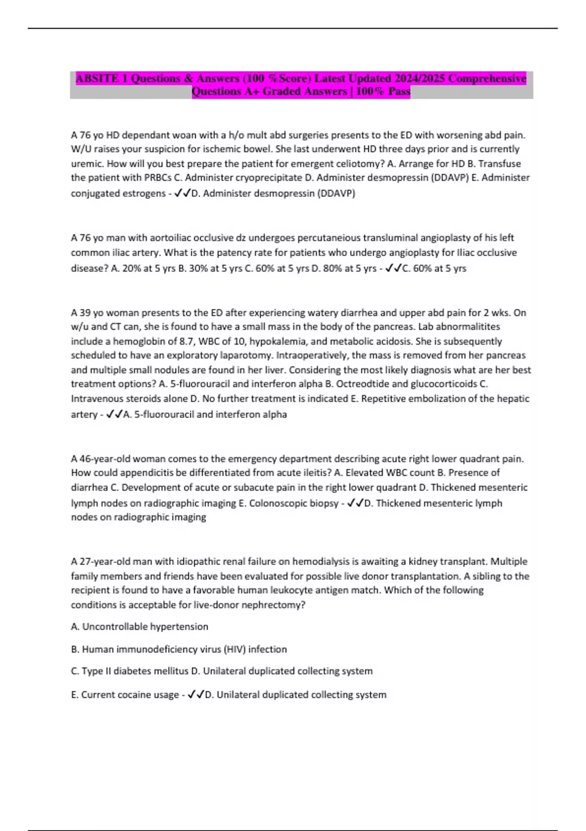 Absite 2024/25 exam Questions & Answers (100 %Score) Latest Updated 2024/2025 Comprehensive Questions A+ Graded Answers | 100% Pass