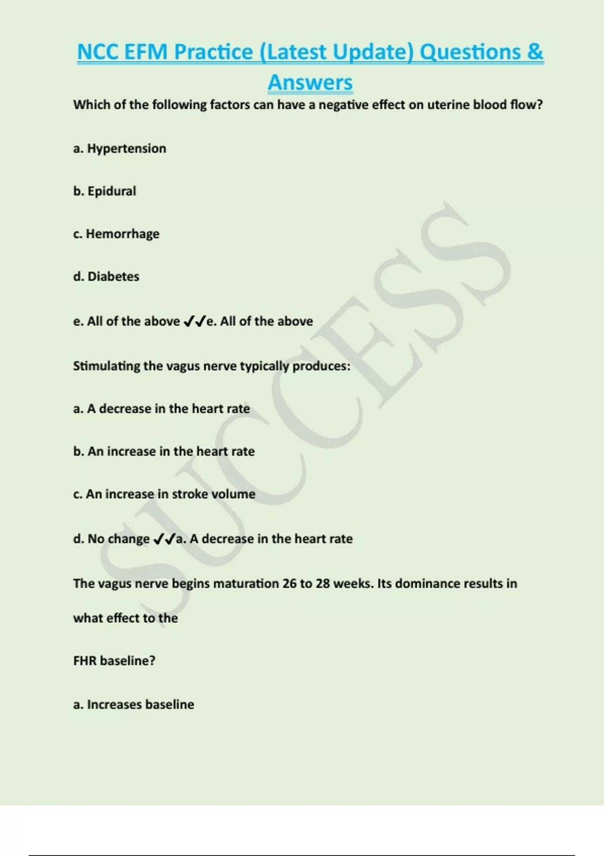 NCC EFM Practice (Latest Update) Questions & Answers 2 Exam (elaborations) NCC EFM (Latest Update) Questions & Answers 3 Exam (elaborations) NCC Electronic Fetal Monitoring Certification; Questions & Answers Latest Update 4 Exam (elaborations) EFM NCC; Questions and Answers 5 Exam (elaborations) NCC EFM Exam Breakdown & Study Guide (Latest Upda