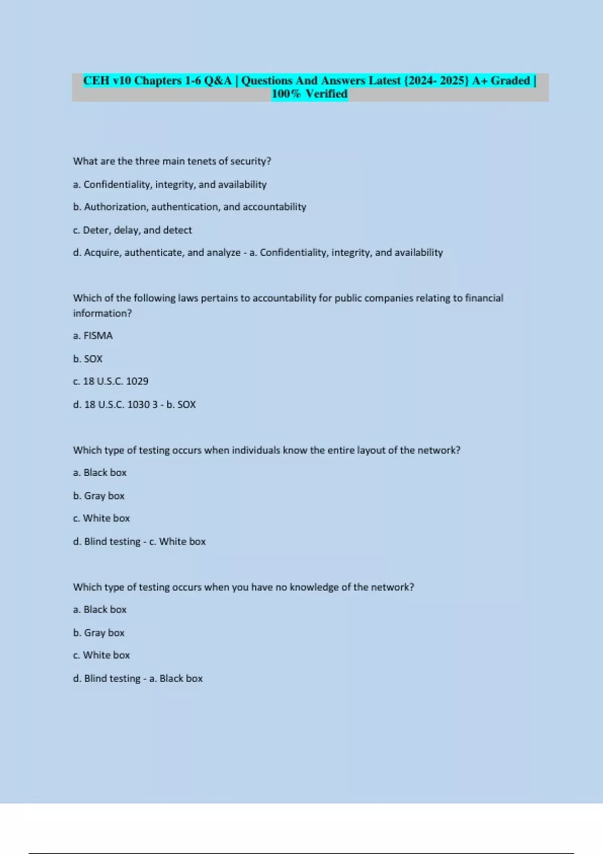 CEH v10 Practice Exam | Questions And Answers Latest {} A+ Graded | 100% Verified