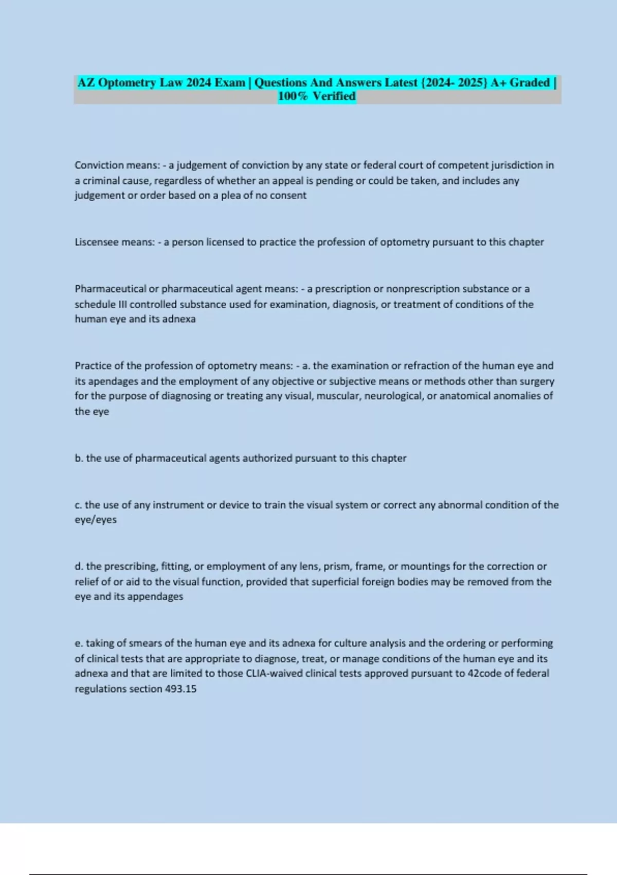 Package deal information::: Optometry Exams | Questions And Answers Latest {} A+ Graded | 100% Verified