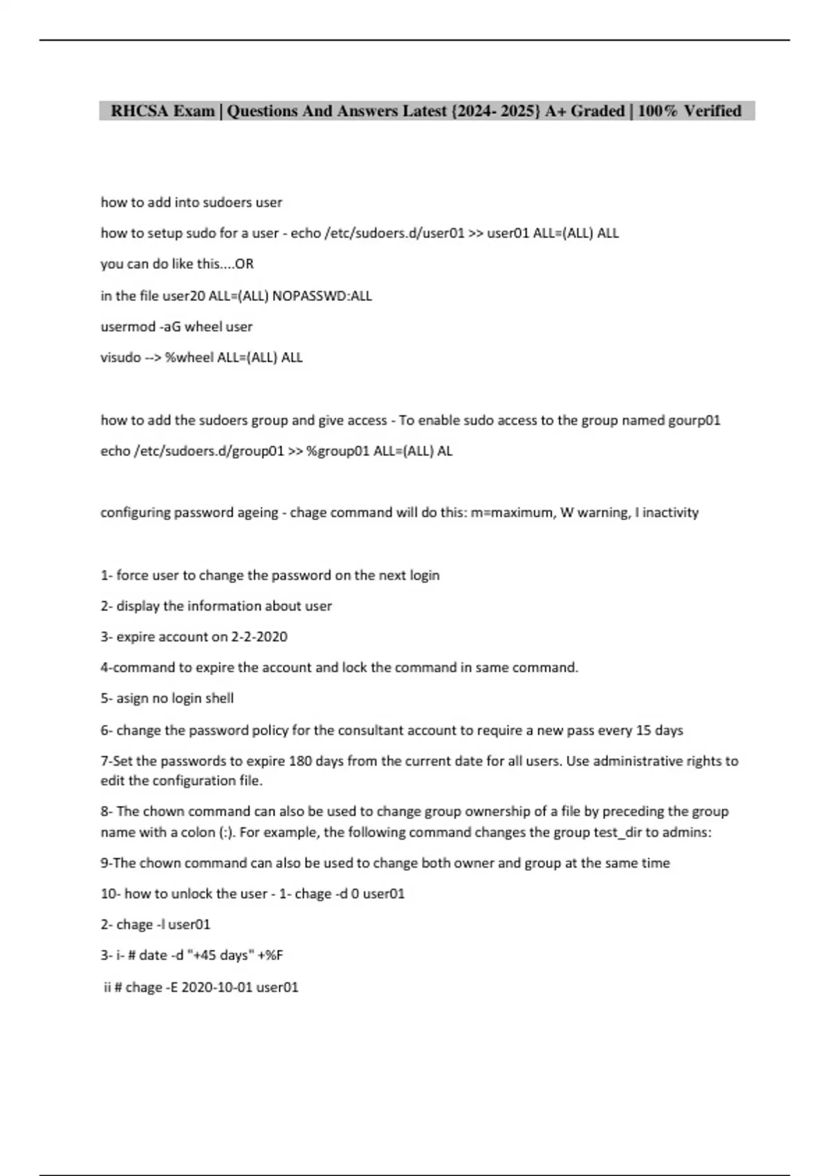 Package deal information::: RHCSA Exams | Questions And Answers Latest {} A+ Graded | 100% Verified