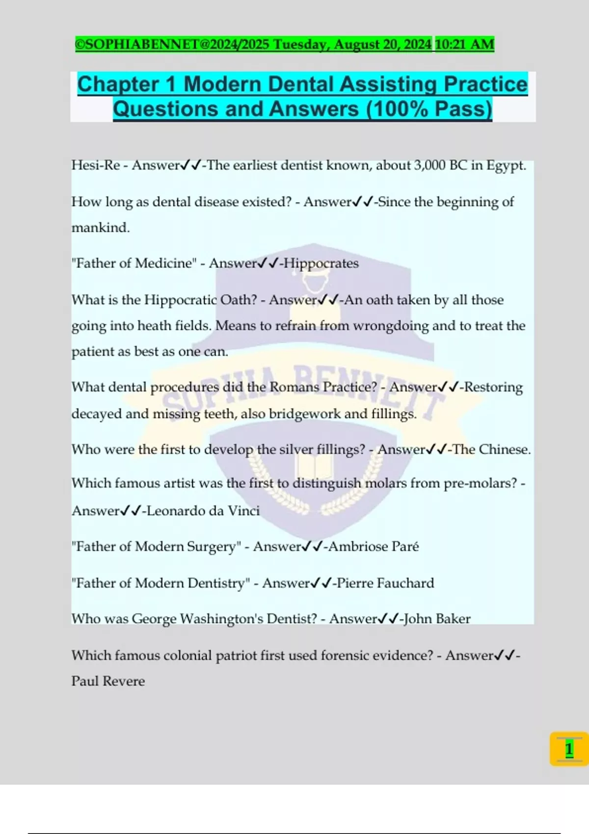 Chapter 1 Modern Dental Assisting Practice Questions and Answers (100% Pass)