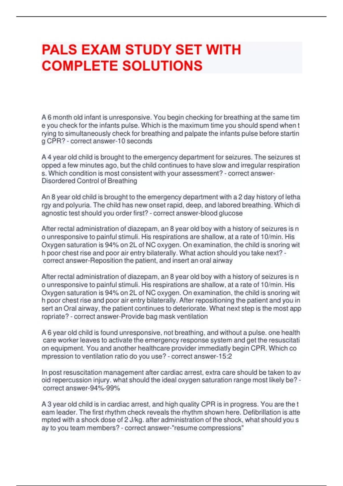 PALS EXAM COMPILATION BUNDLE