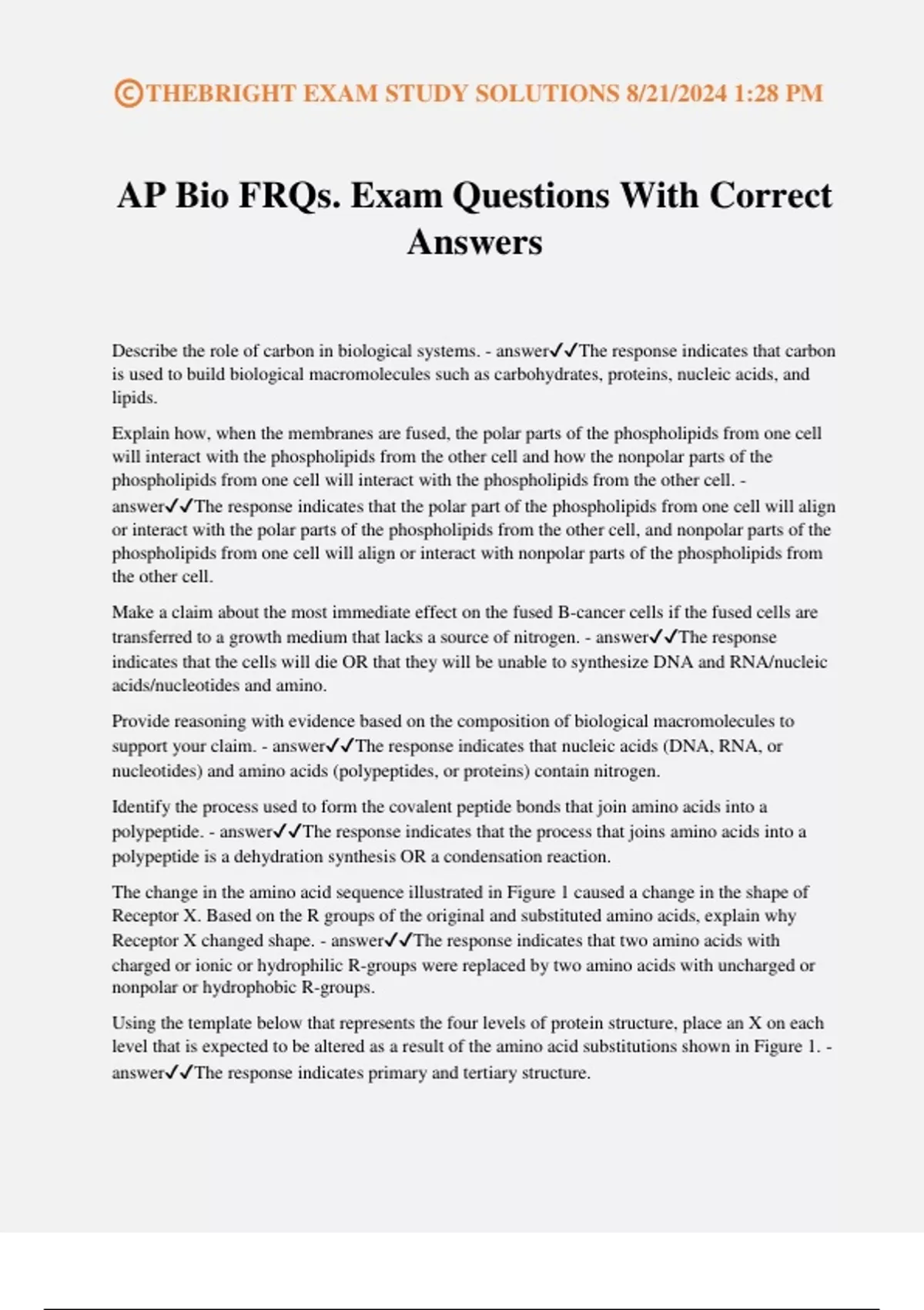 AP Biology Biochemistry Exam Questions With Correct Answers