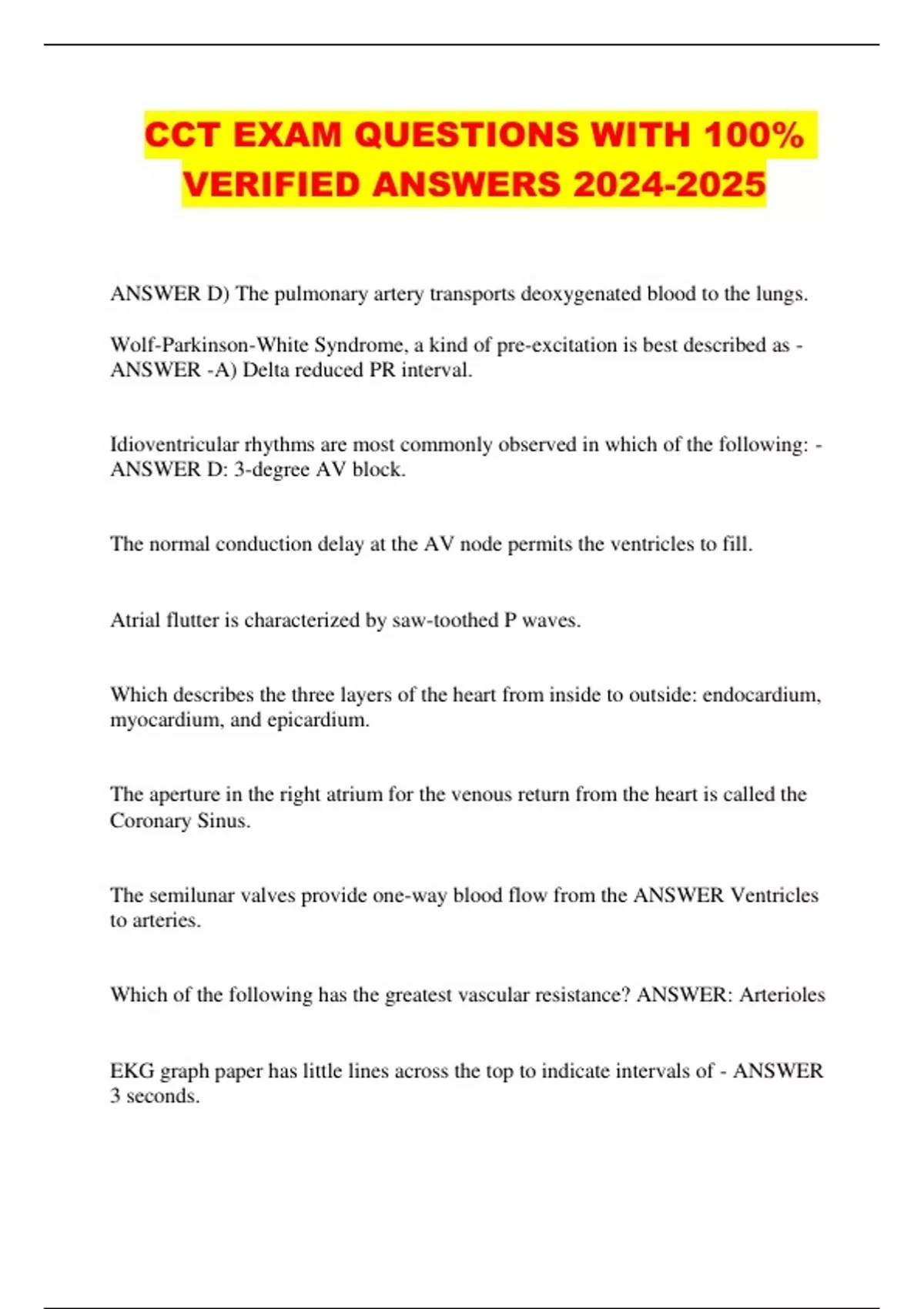 CCT EXAM QUESTIONS WITH 100% VERIFIED ANSWERS