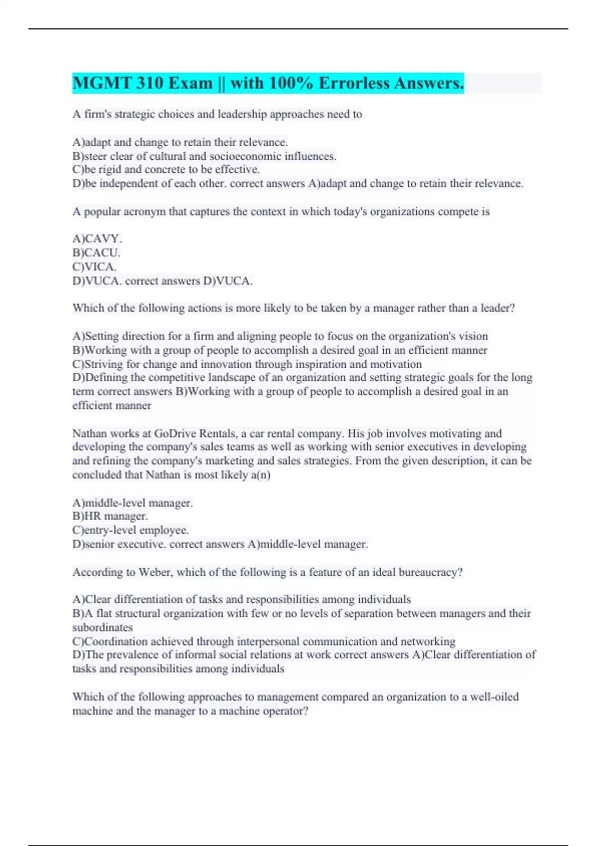 MGMT 310 || All Correct.