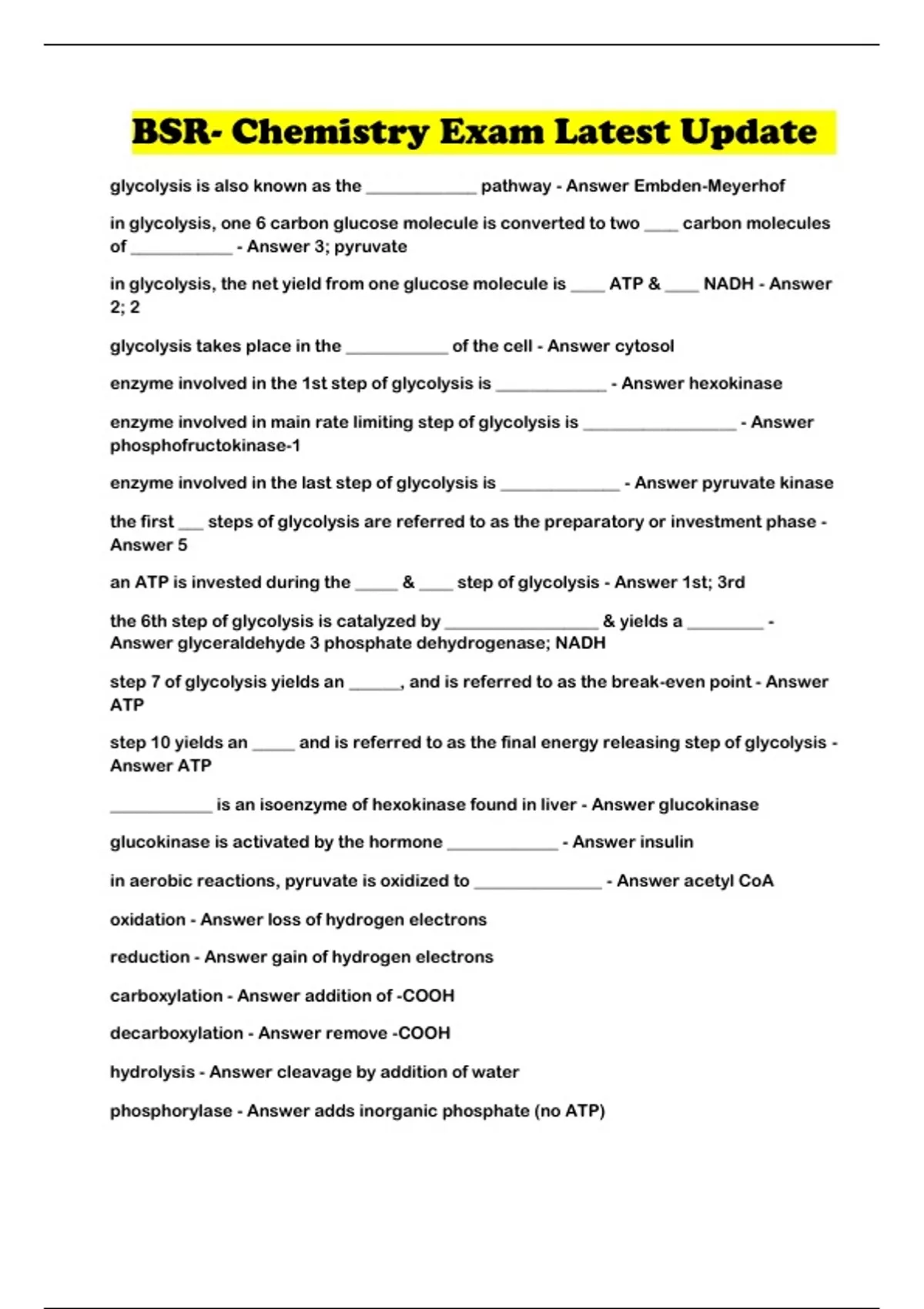 BSR Biochem Exam Latest Update