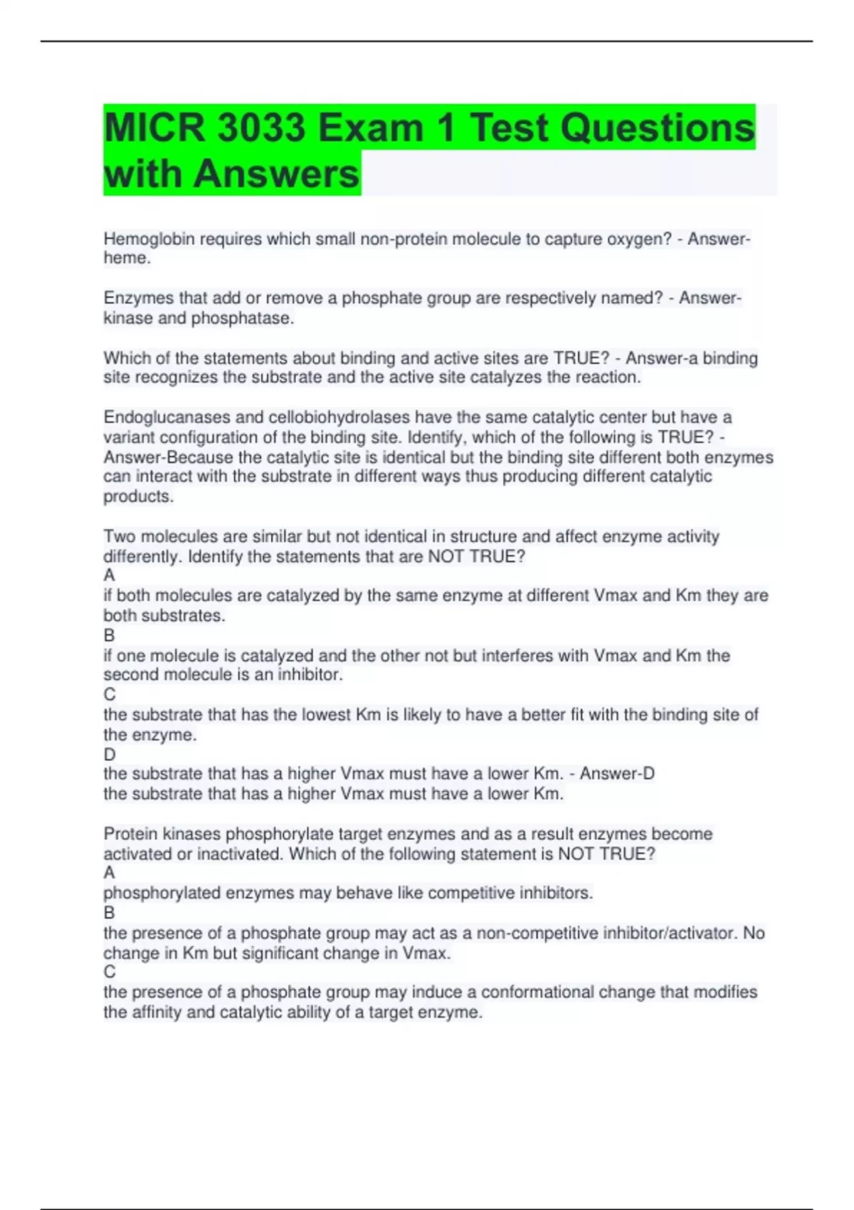 Micr 3033 Ch. 3 and 13 Tested Questions with Revised Answers | UPDATED!!!! 2 Exam (elaborations) Micr 3033 Ch. 4 Test 1 Questions with Answers 3 Exam (elaborations) MICR 3033 Exam 1 Test Questions with Answers 4 Exam (elaborations) MICR 3033 Exam 2 Questions with Complete Solutions 5 Exam (elaborations) MICR 3033 Exam 2 Questions with Revised A