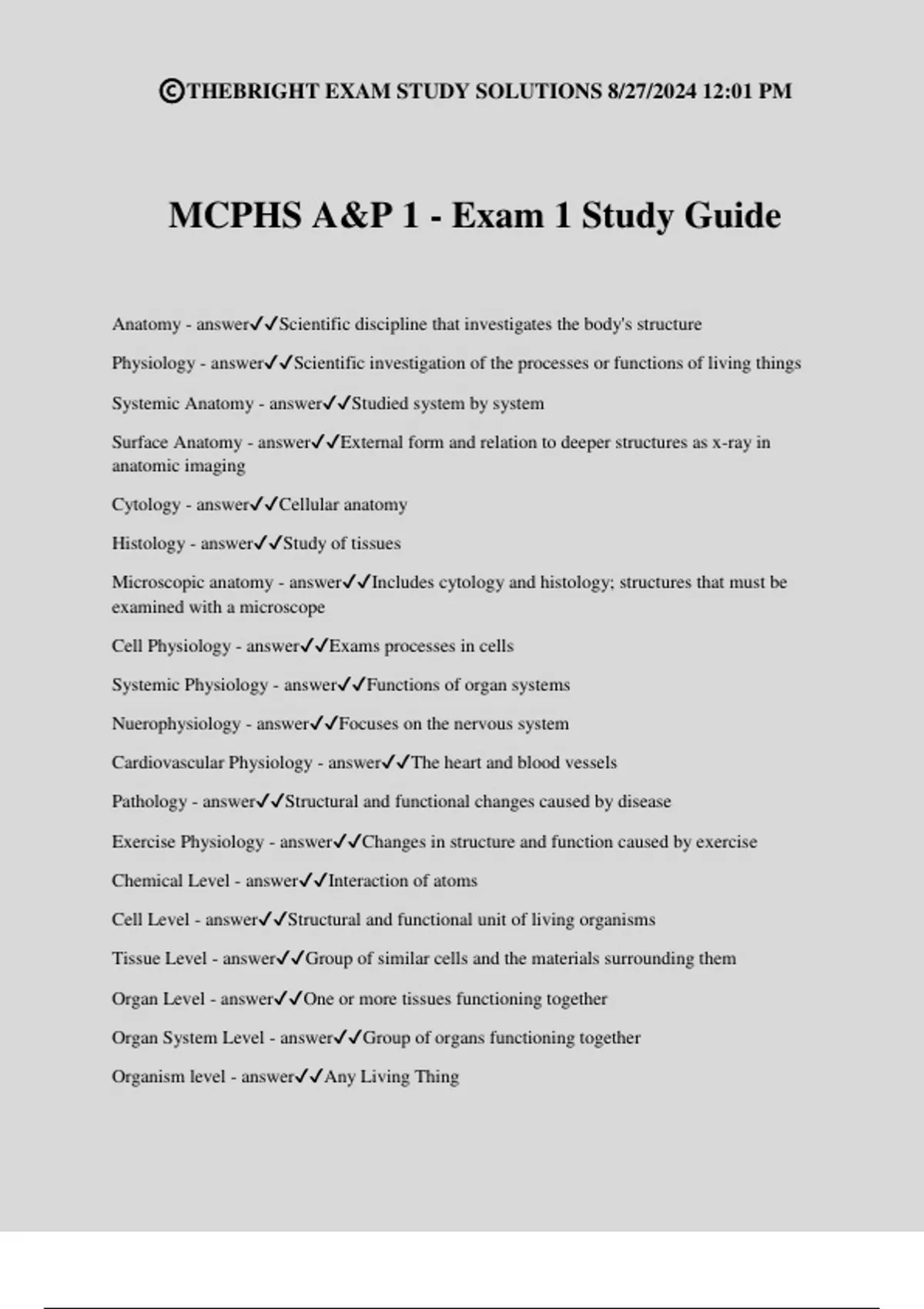 MCPHS Anatomy & Physiology Exam 2 Questions With Correct Answers.
