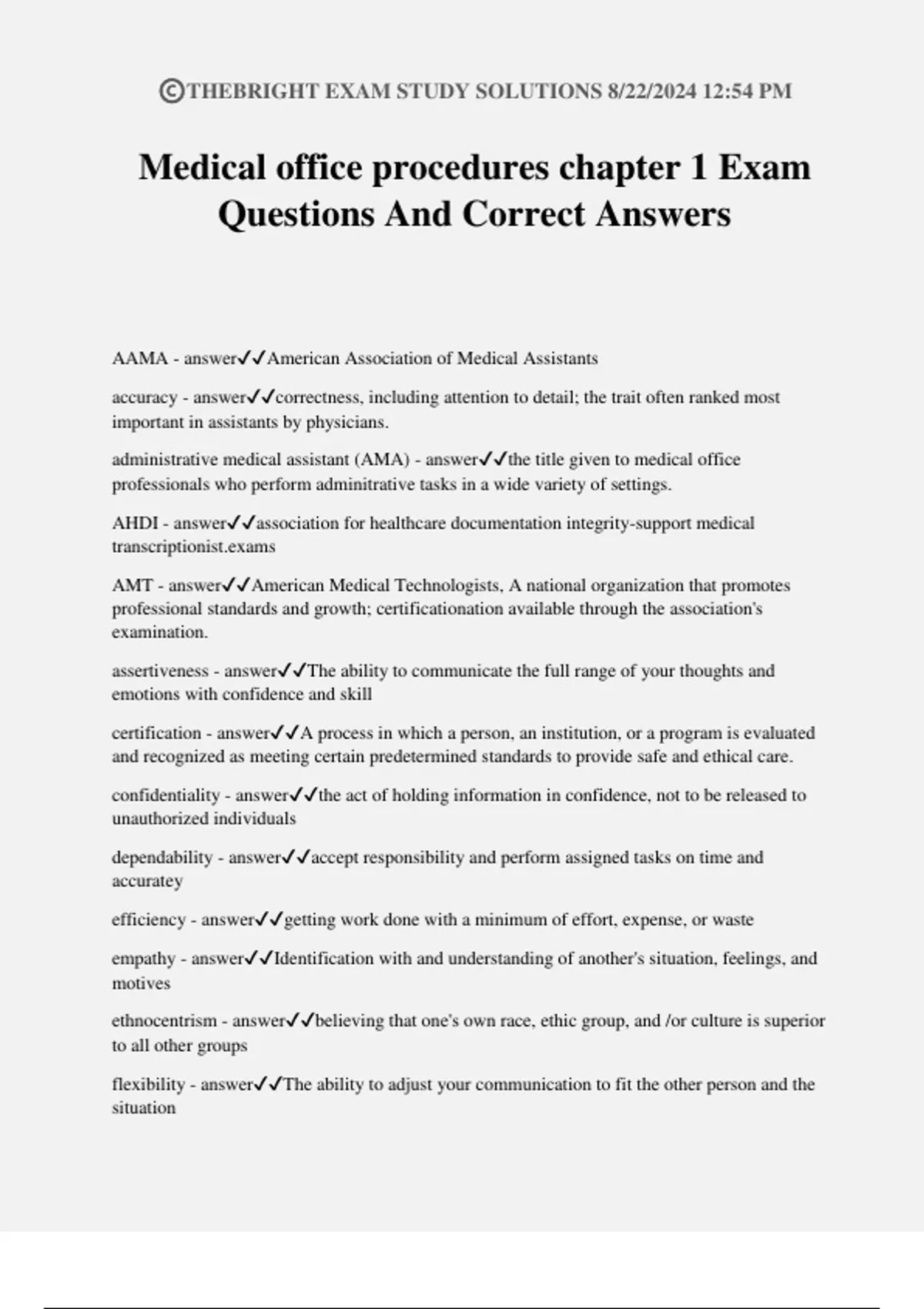Medical office administration Exam Questions And Correct Answers