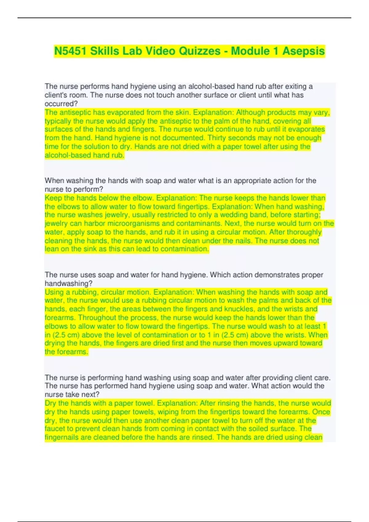 N5451 Skills Lab Video Quizzes - Module 1 Asepsis