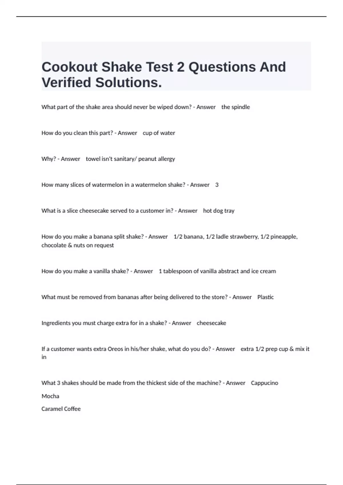 1 Exam (elaborations) Shake Smart Recipe Test Questions And Already Passed Answers. 2 Exam (elaborations) Lifetime Shakes/ Smoothies Prep Exam With Verified Solutions. 3 Exam (elaborations) One Stop Nutrition Shakes Study Guide Exam And Complete Answers. 4 Exam (elaborations) Ch 2 Simulation: Fine Fettle Study Guide Exam And Actual Answers. 5 E