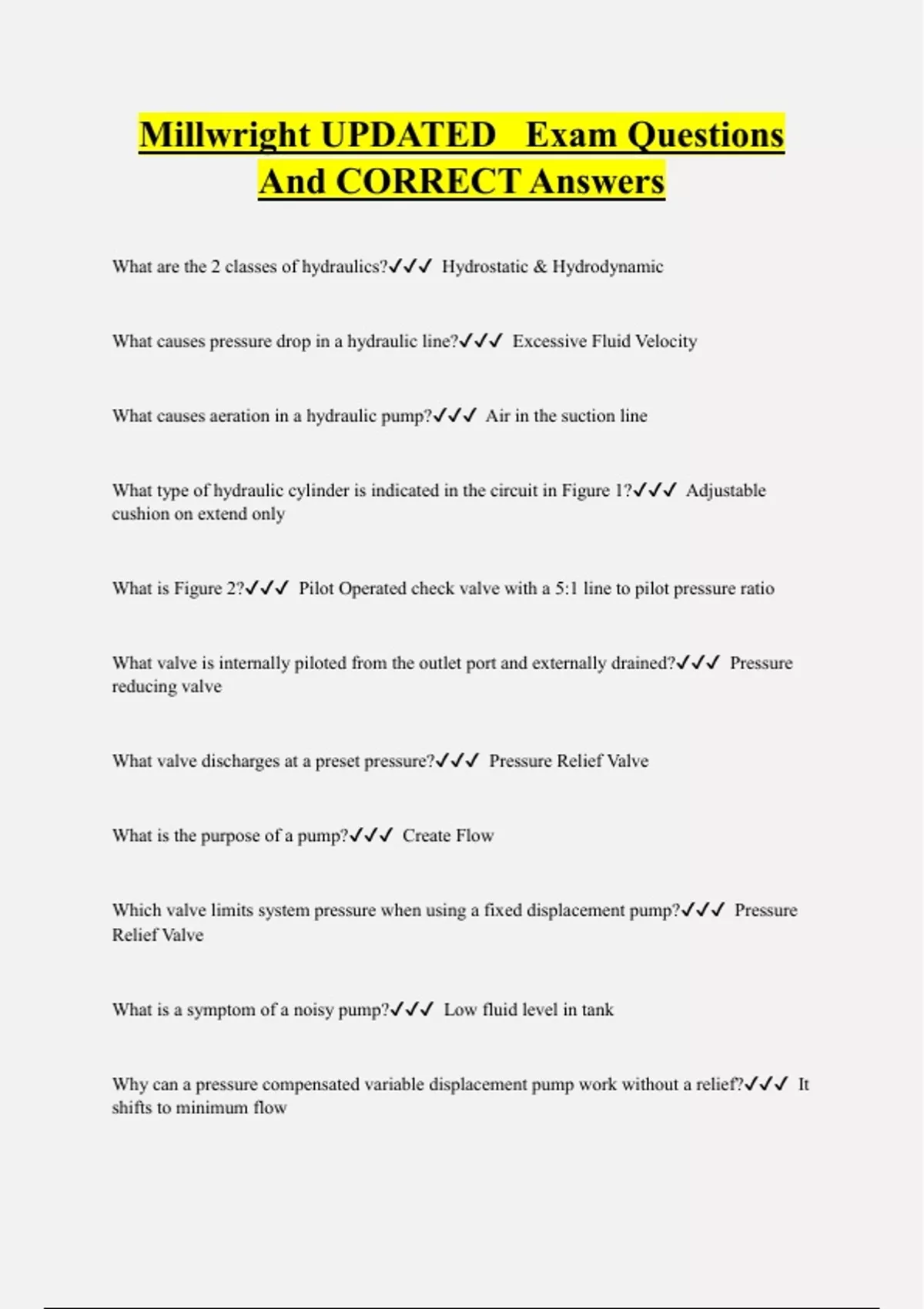 Millwright Bundled exam package with CORRECT ANswers