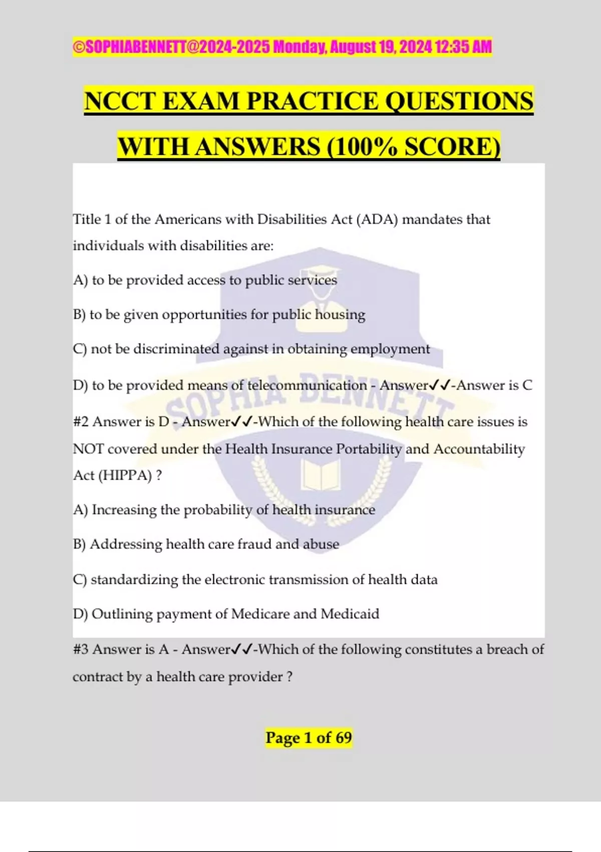 NCCT EXAM PRACTICE QUESTIONS WITH ANSWERS (100% SCORE)