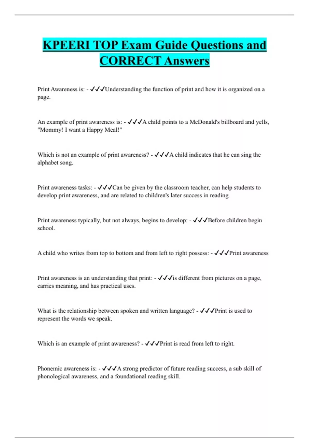KPEERI Bundled Exam Questions and CORRECT Answers