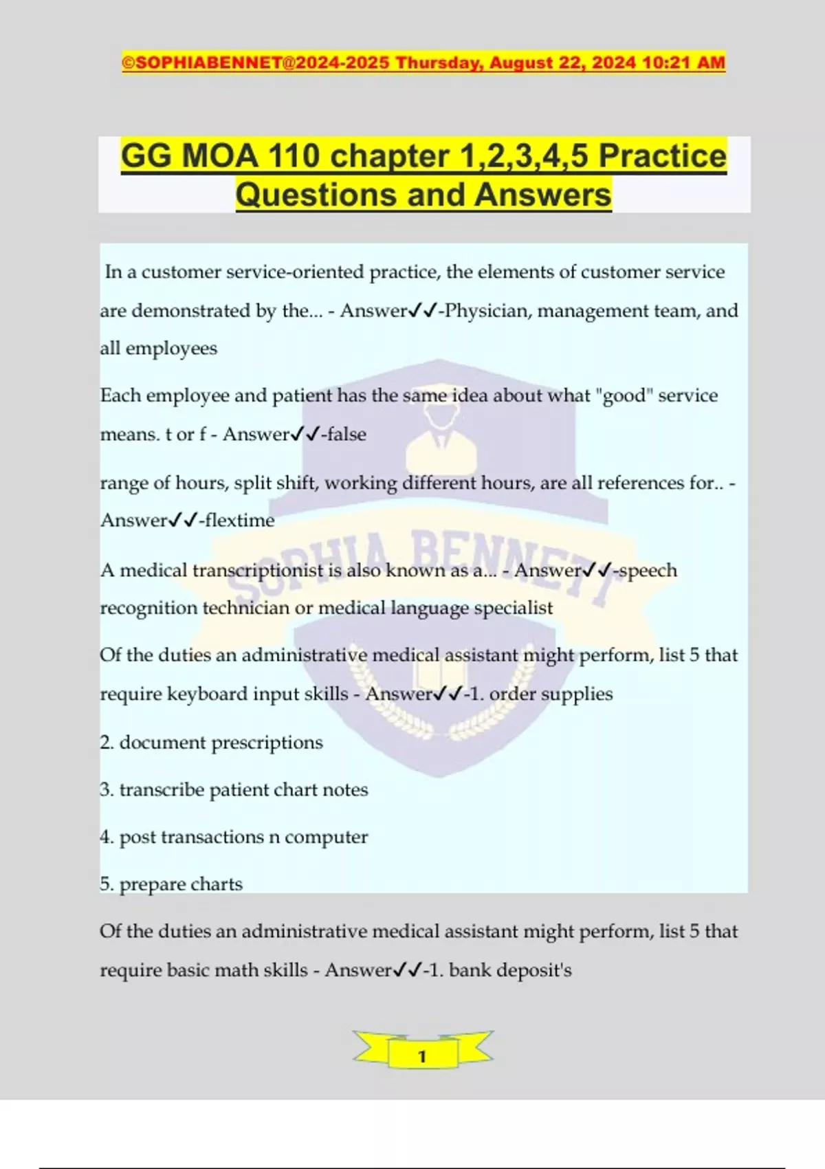 GG MOA 110 chapter 1,2,3,4,5 Practice Questions and Answers