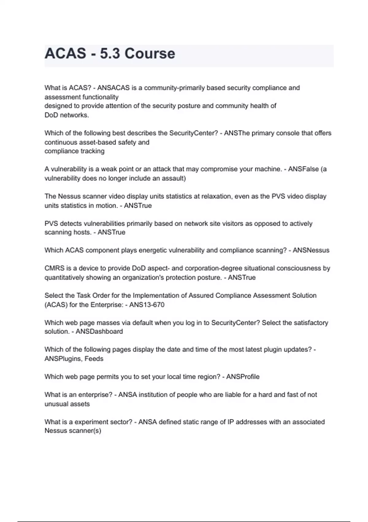 ACAS - 5.3 Course Exam Questions and Answers 2024/2025 with complete solution (ALL BUNDLED HERE!!!)