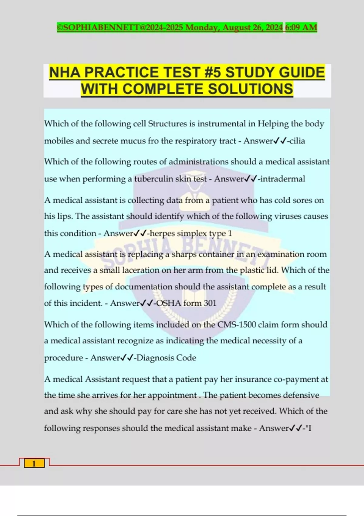 NHA CCMA Exam Bundle Pack:::Questions and Answers | 100% Correct