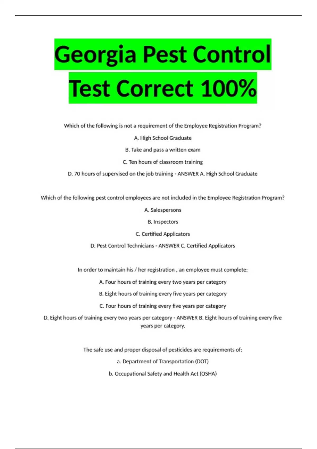 Georgia pest control test Correct 100%PACKAGE DEAL
