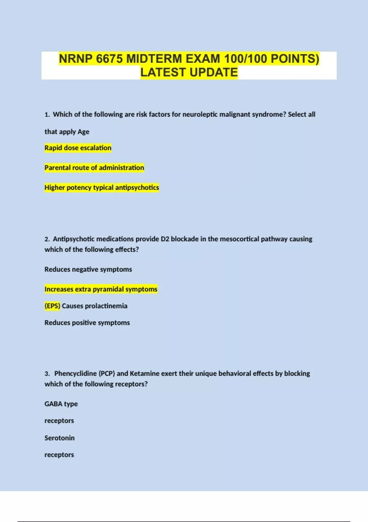 PACKAGE DEAL FOR; NRNP 6675 Midterm Exam & Final Exam STUDY BUNDLEPACKAGE DEAL FOR; NRNP 6675 Midterm Exam & Final Exam STUDY BUNDLE