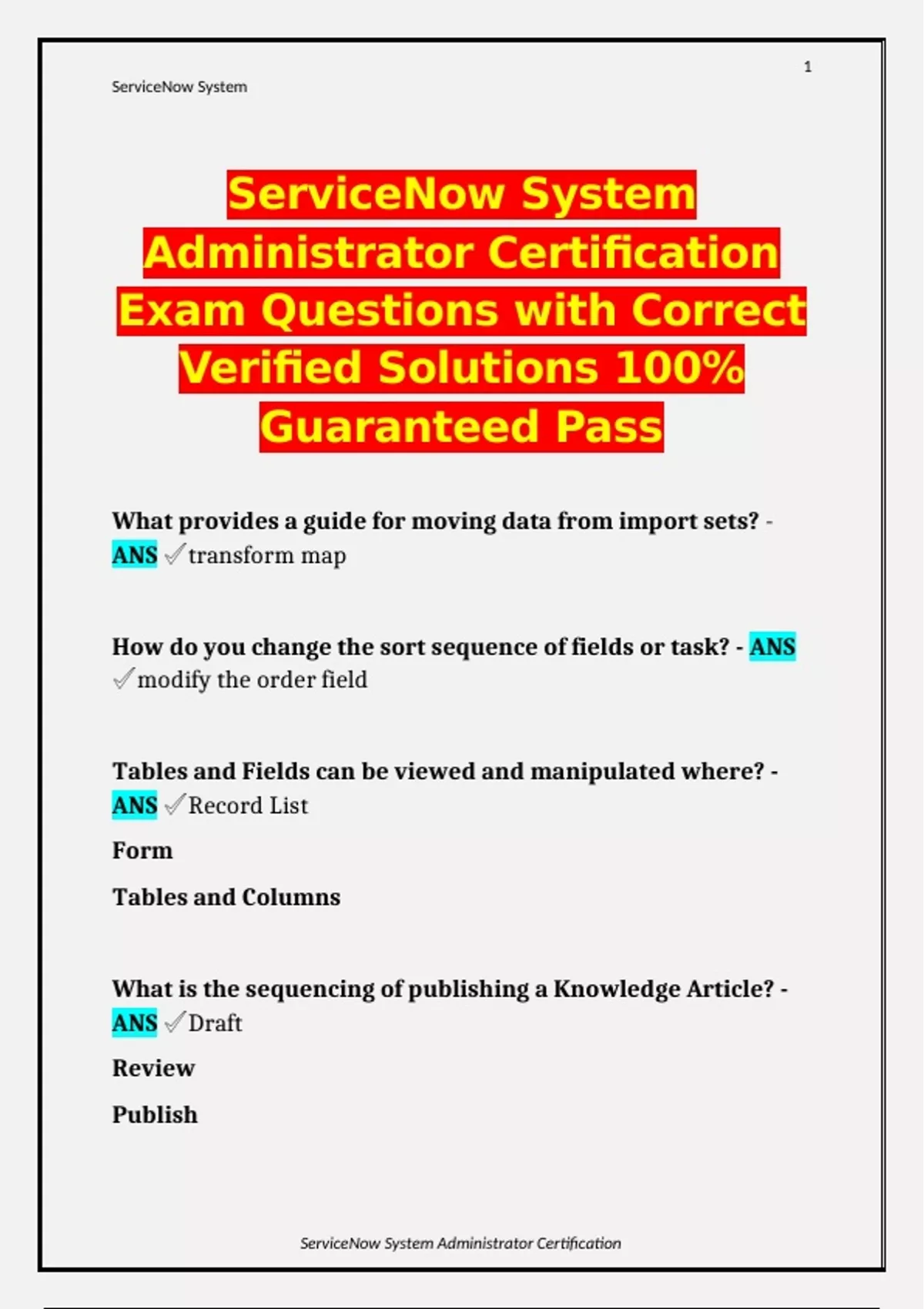 ServiceNow System Administrator Certification Exams Questions with Correct Verified Solutions PACKAGE DEAL